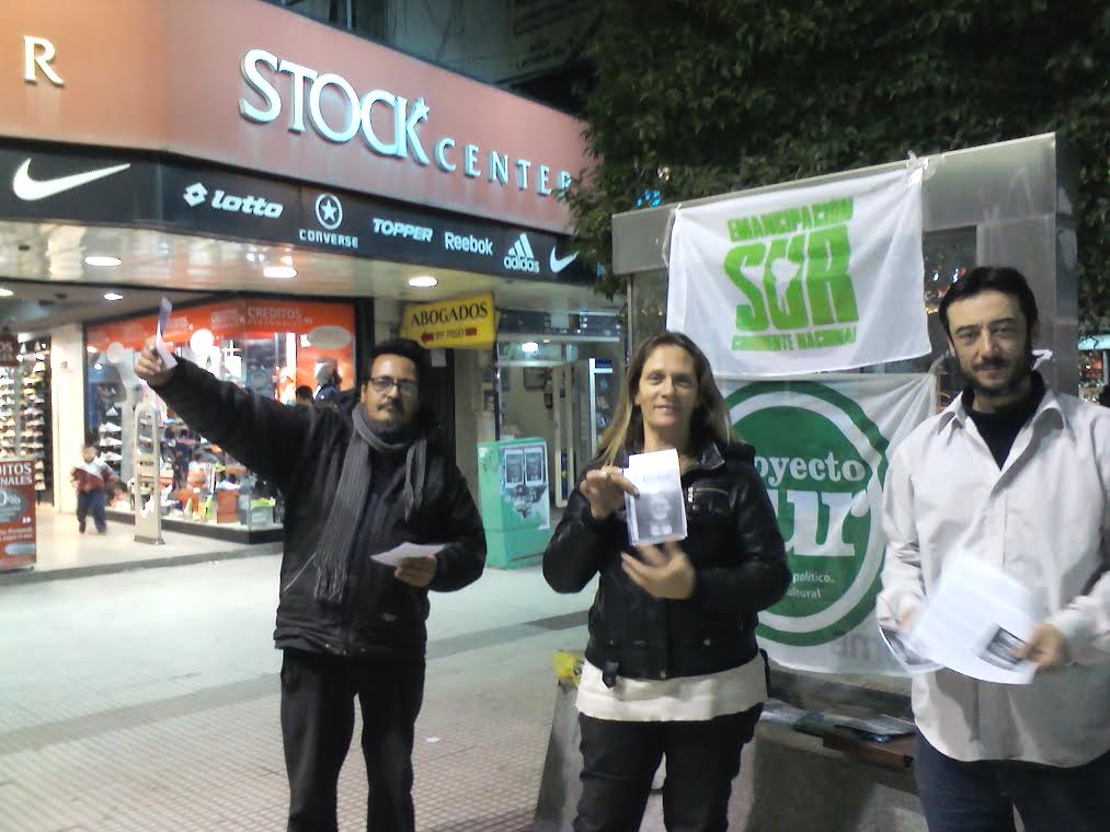 Promoviendo la auditorÃa de la deuda externa y que no se dilapide el dinero que deberÃa usarse para evitar el hambre, la desocupación y fomentar el trabajo, la educación y la salud pública, al mismo tiempo que reivindicamos la defensa de los bienes comunes, entregamos volantes con estas causas tan importantes pero, lamentablemente, poco consideradas por los grandes medios y partidos, sean oficialistas o de oposición, que conforman, para estos casos, una gran mayorÃa polÃtica y periodÃstica, que coincide tanto en pagar la deuda ilegÃtima de la dictadura, como en impulsar el saqueo y destrucción del ambiente con el fracking -fractura hidráulica- para extraer los llamados petróleo y gas no convencionales, o la megaminerÃa o los monocultivos.