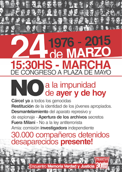 Desde la Corriente Nacional Emancipación Sur convocamos a la 39 Marcha contra la impunidad de ayer y de hoy. unnamed