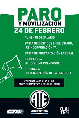 ate (1)Por: paritarias sin techo, aumento salarial, ni un despido mas en el estado nacional provincial y municipal, contra la precarización laboral, contra la judicialización de la protesta social.