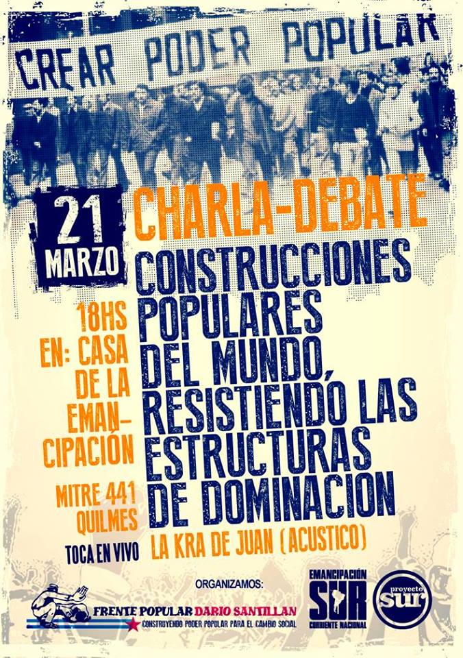 En este marco, los invitamos a participar de la charla-debate en la Casa de la Emancipación :Mitre 441 Quilmes. El 21 de Marzo a las 19 hs.